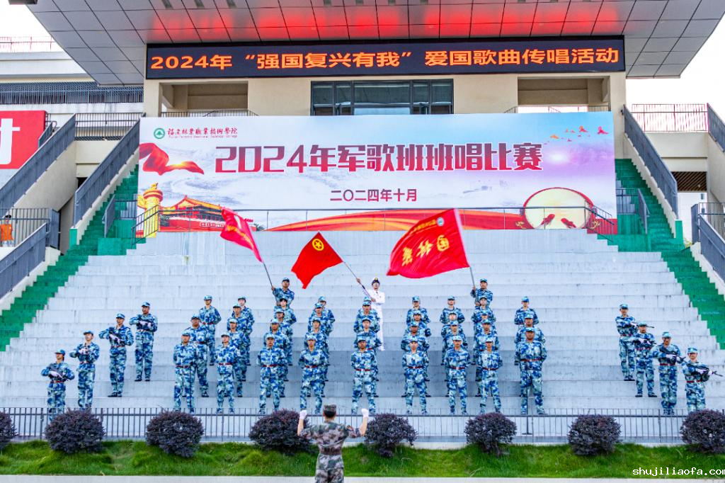 本网讯 10月21日和22日下午,我院2024年军歌班班唱暨“强国复兴有我”爱国歌曲传唱活动分别在江南校区和天麟校区田径场举行。院学生工作部部长陈友益、经济管理系党总支书记陈剑勇、武警南平支队执勤一大队副大队长李建、武警南平支队执勤一大队机动中队副中队长黄泽金出席活动。相关部门代表及各系党总支副书记、学生科科长(负责人)、新生辅导员和全体24级新生共同观看了本次比赛。各系学生科科长(负责人)、学生工作部老师和天麟校区教官代表担任比赛评委。